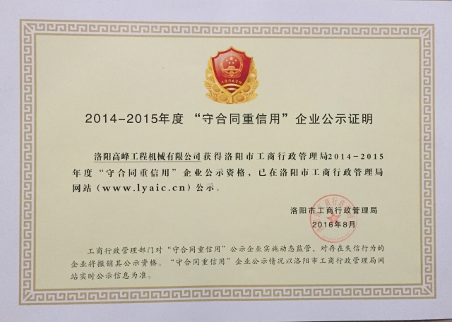 2014-2015守合同重信用企業1